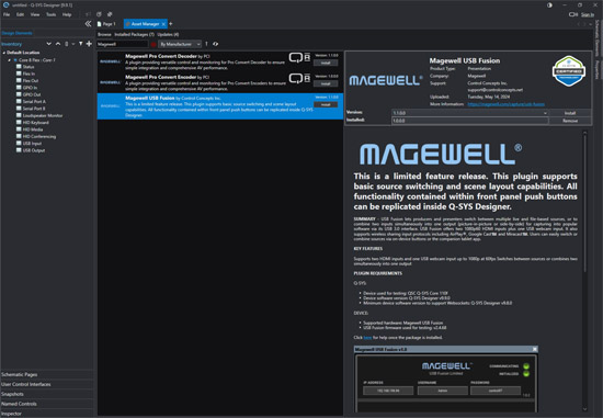 Q-SYS DesignerAsset Manager提供了一个集中的插件库,用户可以轻松下载并集成各种第三方AV设备到Q-SYS生态系统中。用户无需额外学习多套控制界面,只需在Q-SYS Designer中即可完成所有操作,大大提升系统管理效率。