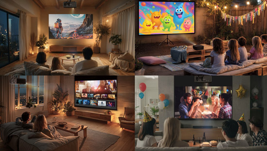 奥图码 UHZ528 打破 “大画面需要大空间” 的限制,凭借 1.21-1.59 投射比与 1.3 倍手动变焦,在 1 米距离可投射 28 英寸画面,8 米距离能打造 300 英寸巨幕 —— 小户型客厅可投 100 英寸,大空间卧室能放 150 英寸,甚至在庭院搭建户外影院,也能轻松满足需求。